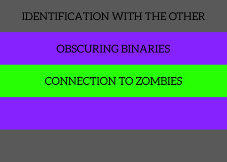 Zombies occupy a space between binaries. Dead/alive, human/non-human. Man/woman.